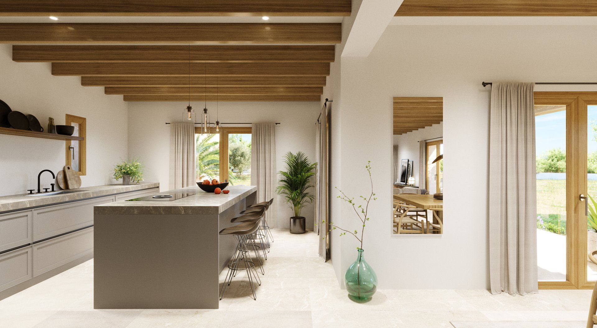 Gently nested between the golf of Vall d’Or and the nice harbor of Portocolom, Villa S’Horta will offer lovely views to the sea and to the hills of Felanitx. The large plot offers a very peaceful environment, with a natural integration of the surrounding villas. No road noise will interrupt the birdsong.