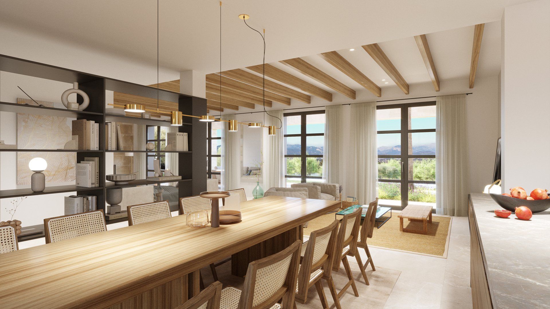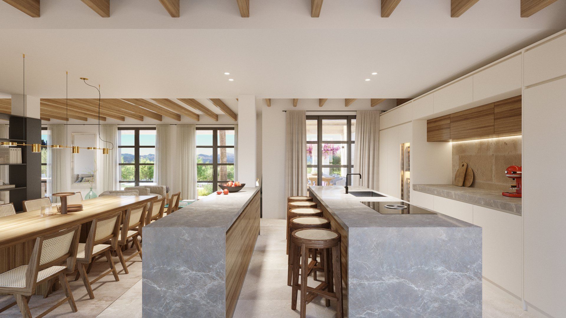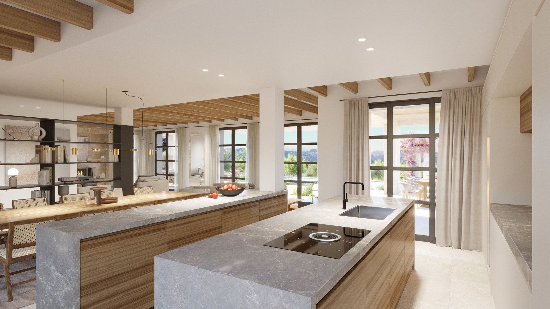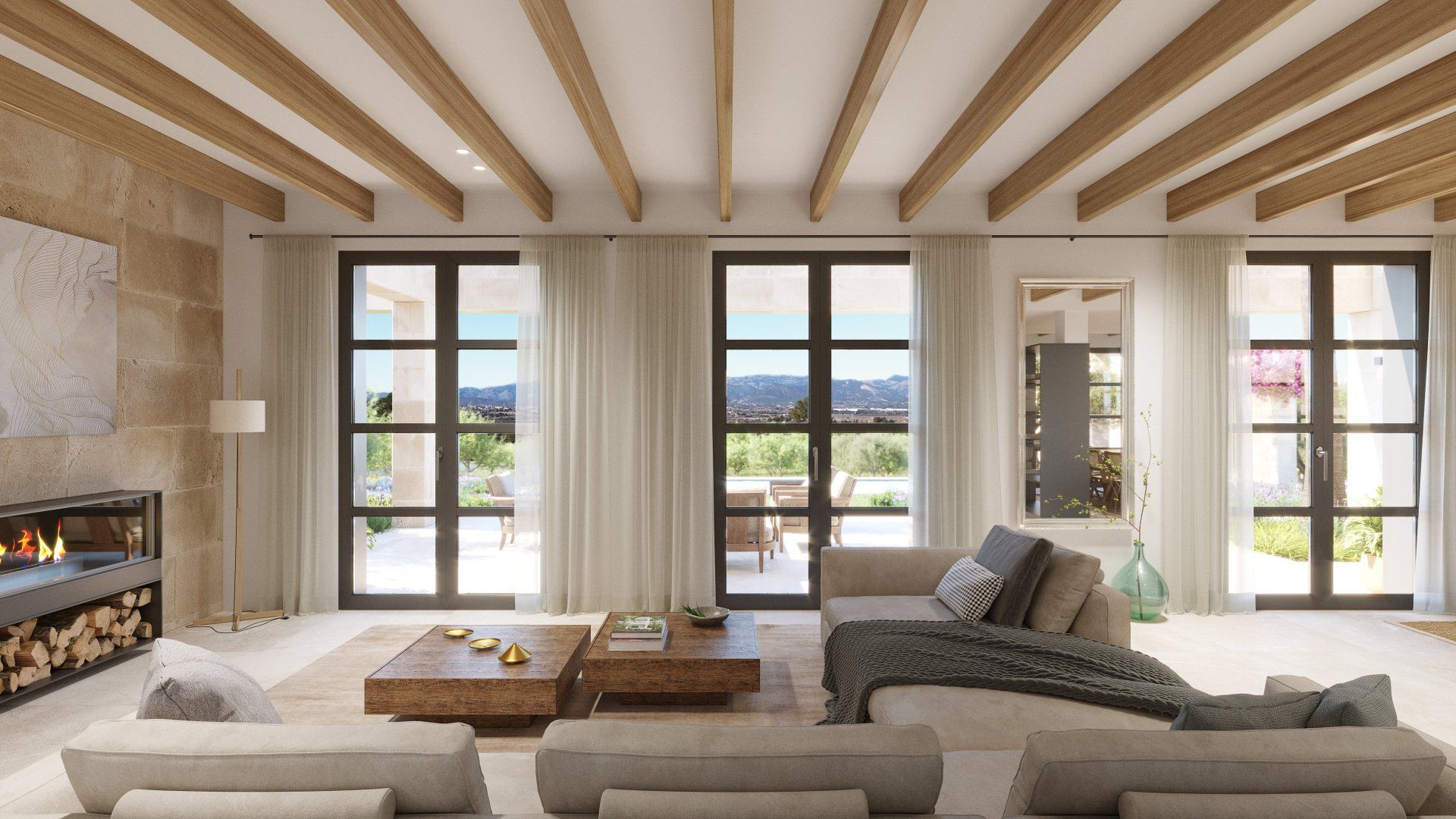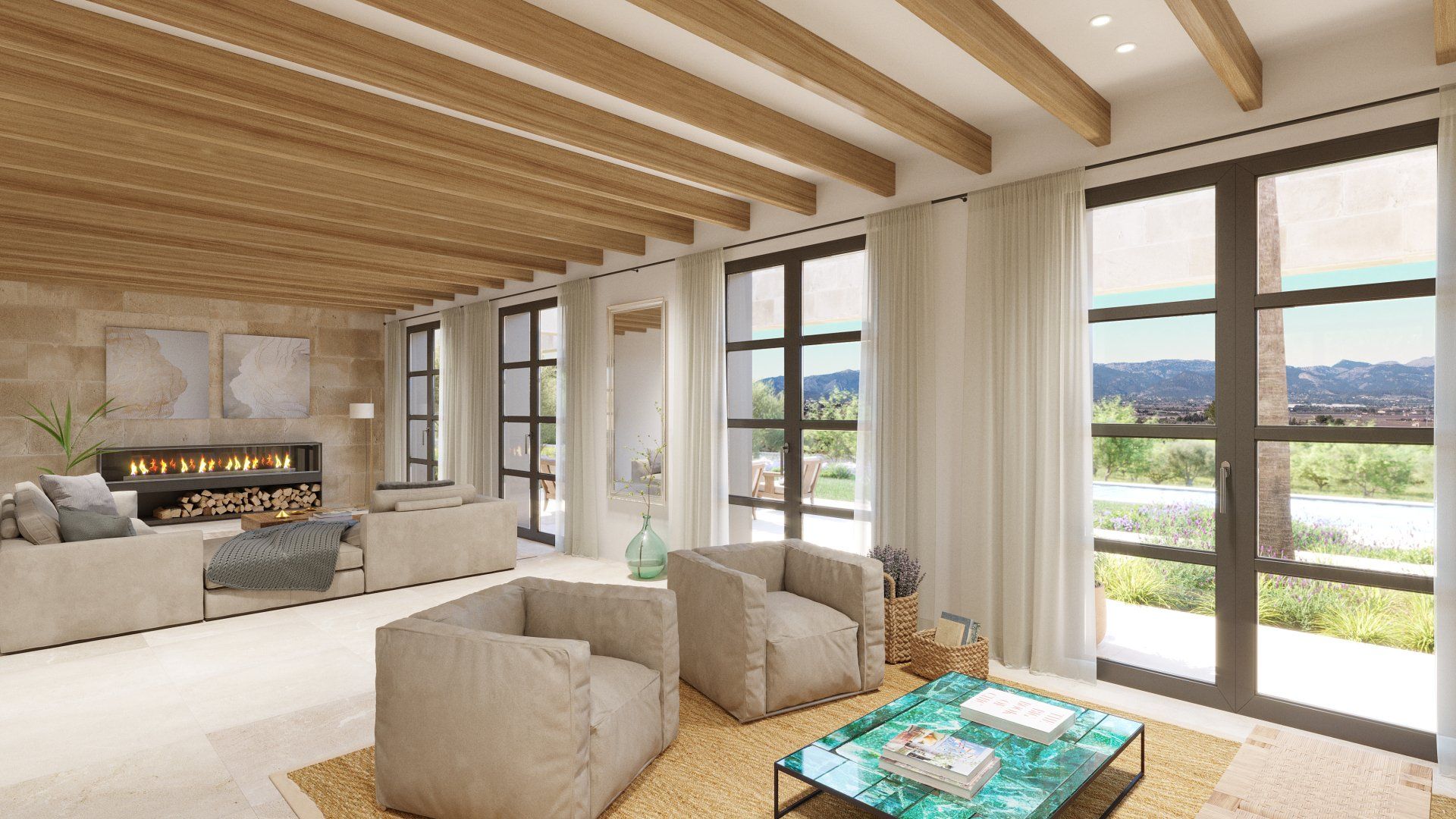 Quietly hidden in the country side, just 6 minutes away from the center of the village, Villa Santa Maria will offer spectacular views to the Tramuntana mountain range. The large plot of 15400m2 offers absolute tranquility, in a typical Mallorcan rural atmosphere, while being only 16 minutes away from the center of Palma, and 20 from the international airport.