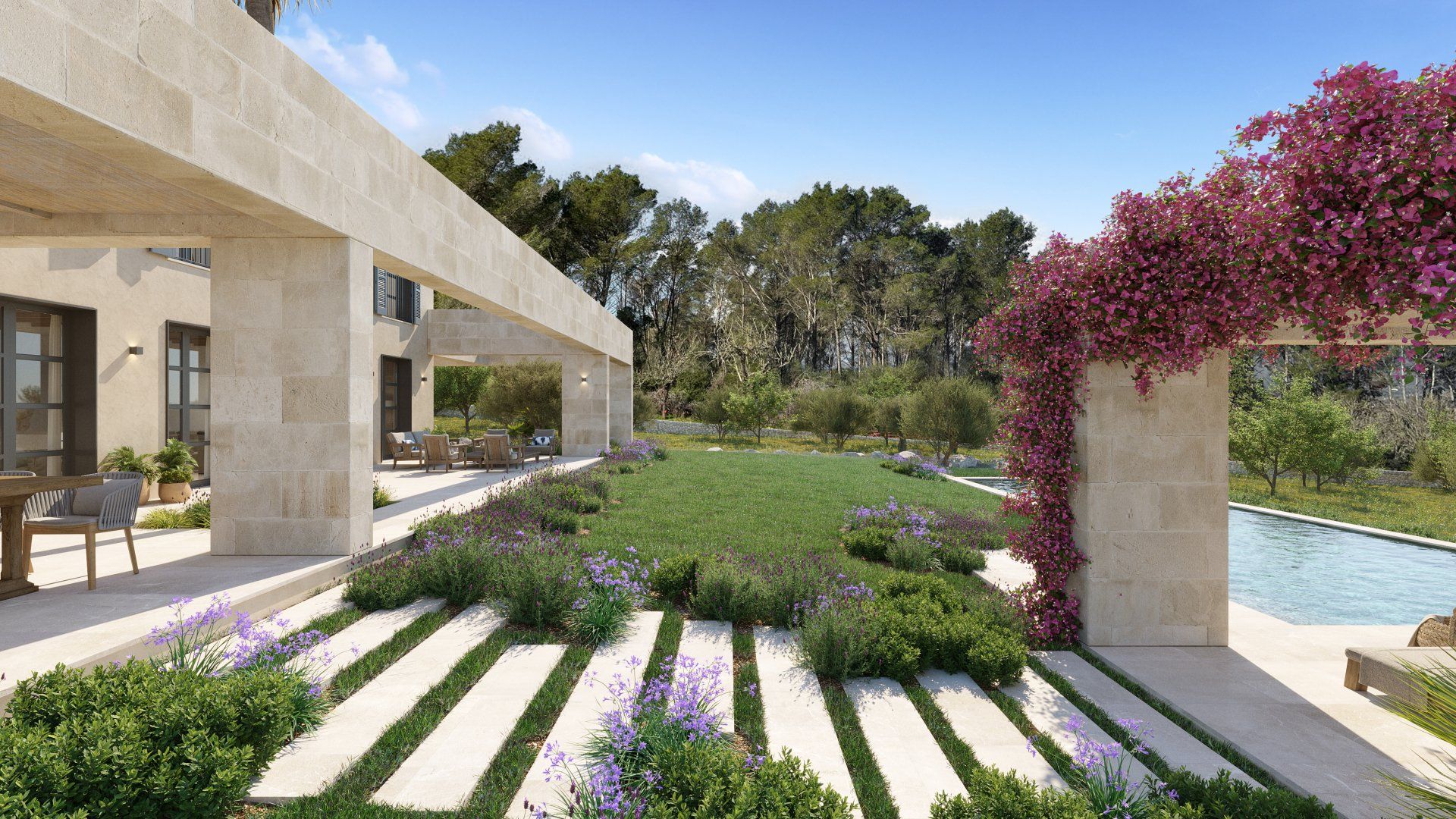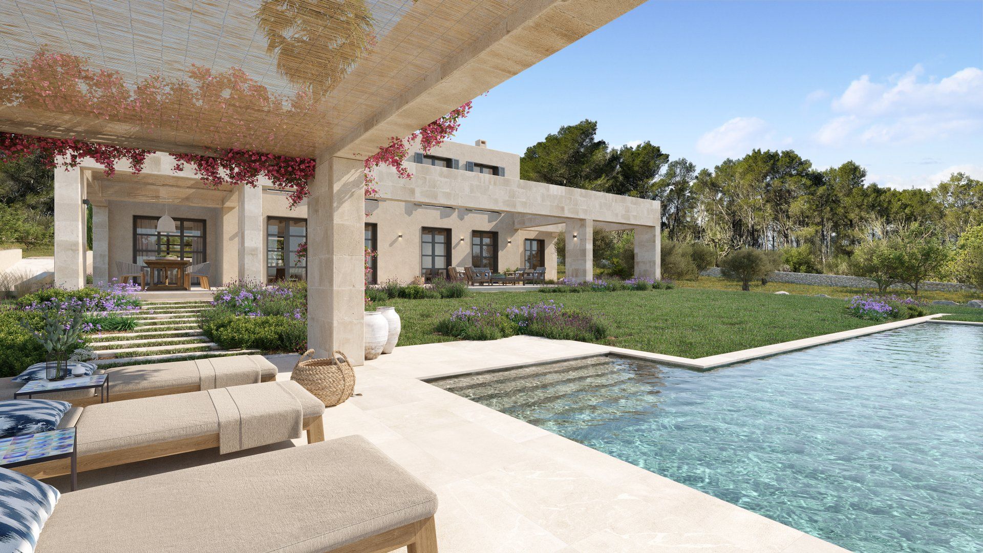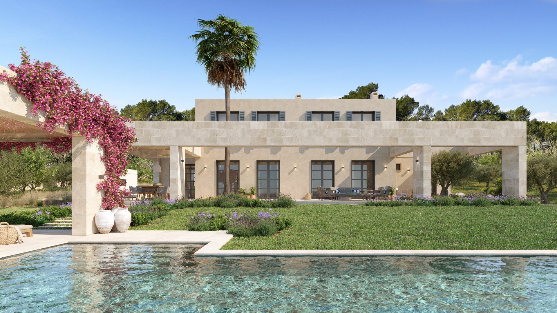 The villa is being built on 3 levels (including a full basement partially lit by natural light) and will offer large living spaces, a beautiful Mediterranean garden, and a large swimming pool.